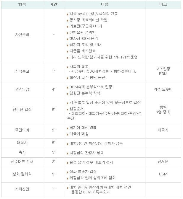 체육대회 행사 연출 방향