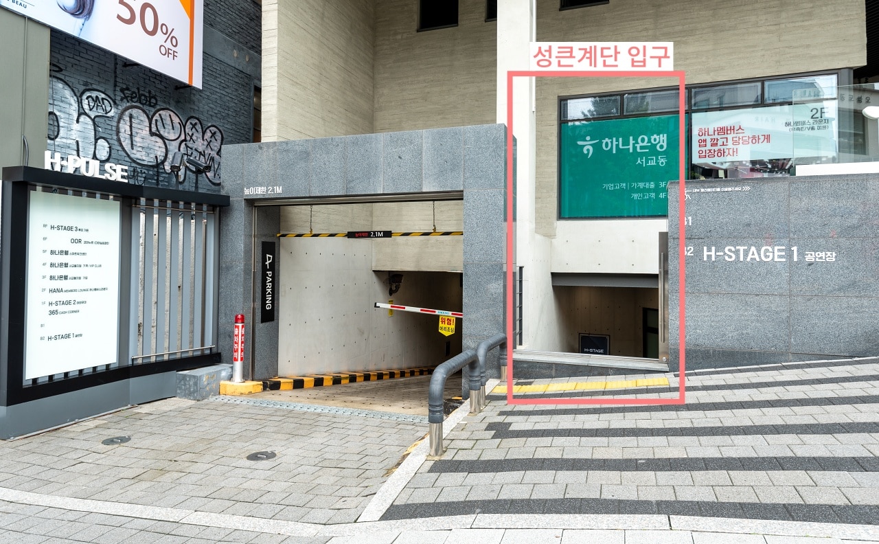 H-STAGE는 하나은행 건물 지하 2층에 위치하고 있습니다.