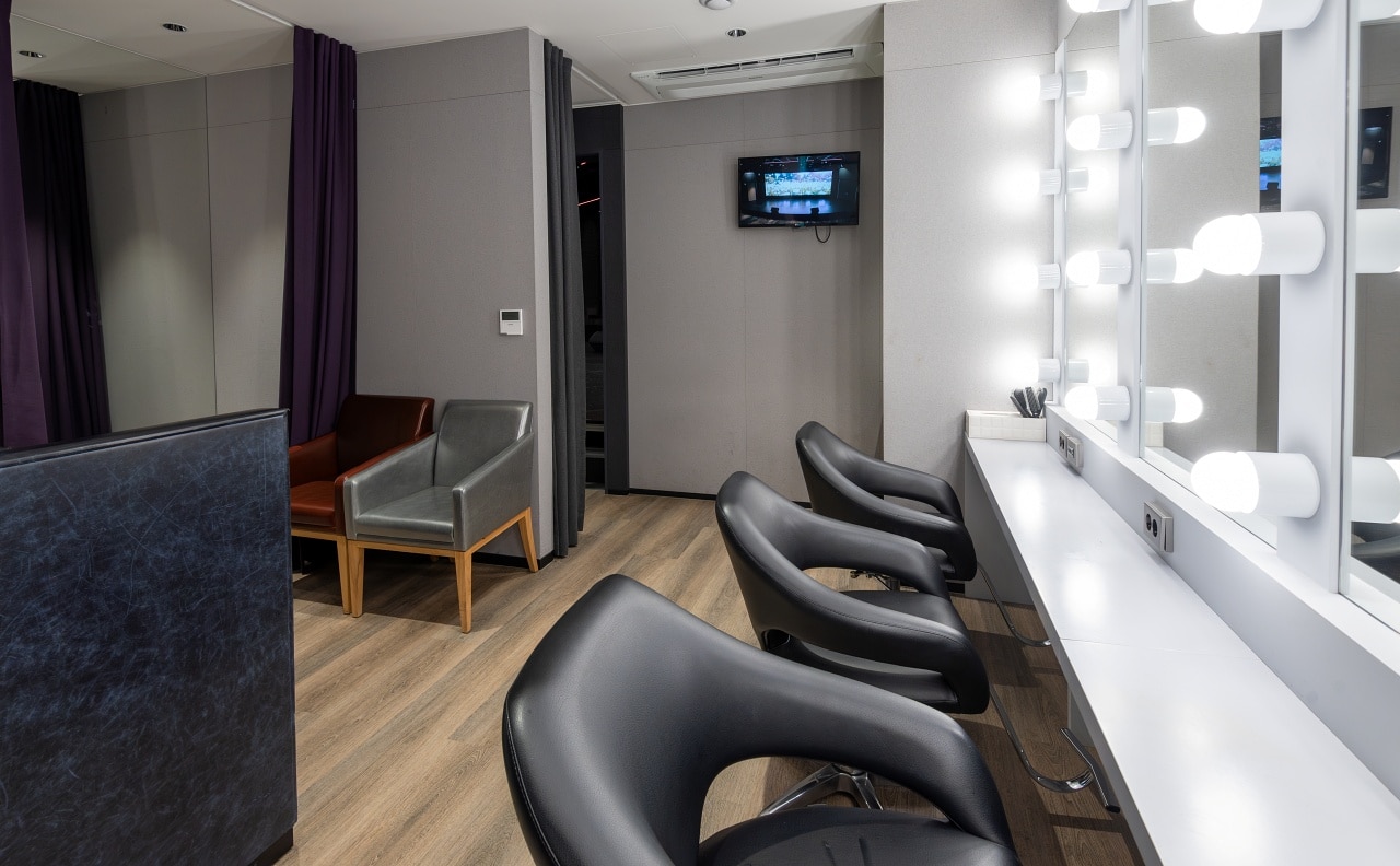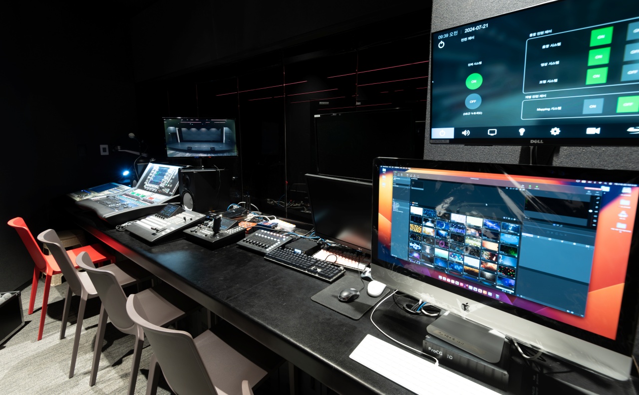 7.2m x 2.4m의 LED 풀 스크린, 조명, 음향, 촬영 시스템, 프로젝션 맵핑 시스템을 갖추고 있습니다.
